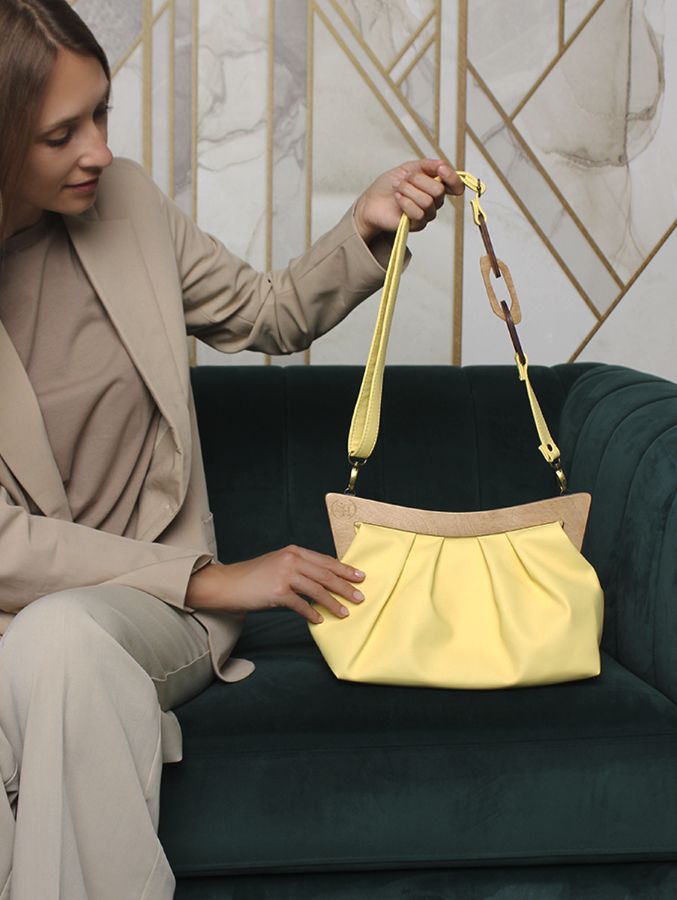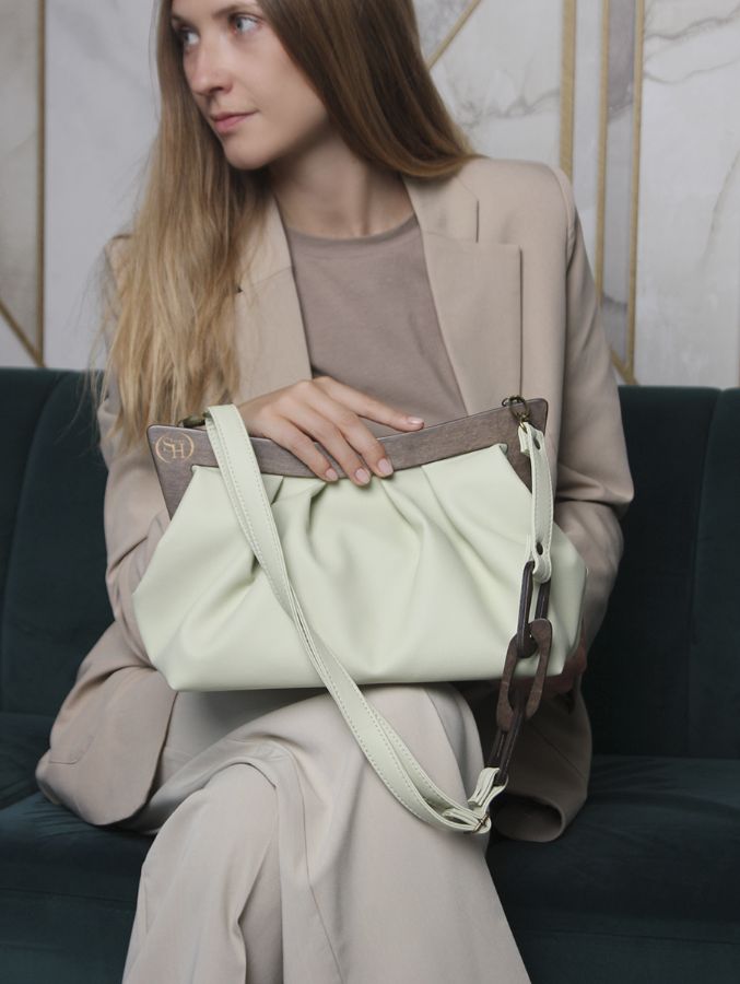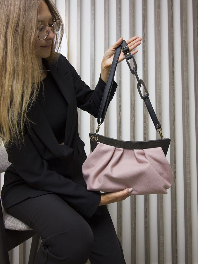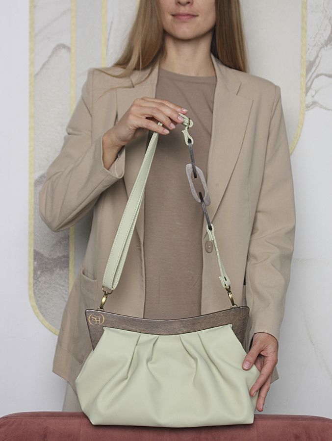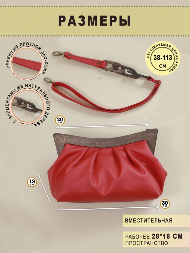 • деревянный ремень с плечевой вставкой из эко-кожи в цвет сумки или универсального цвета
