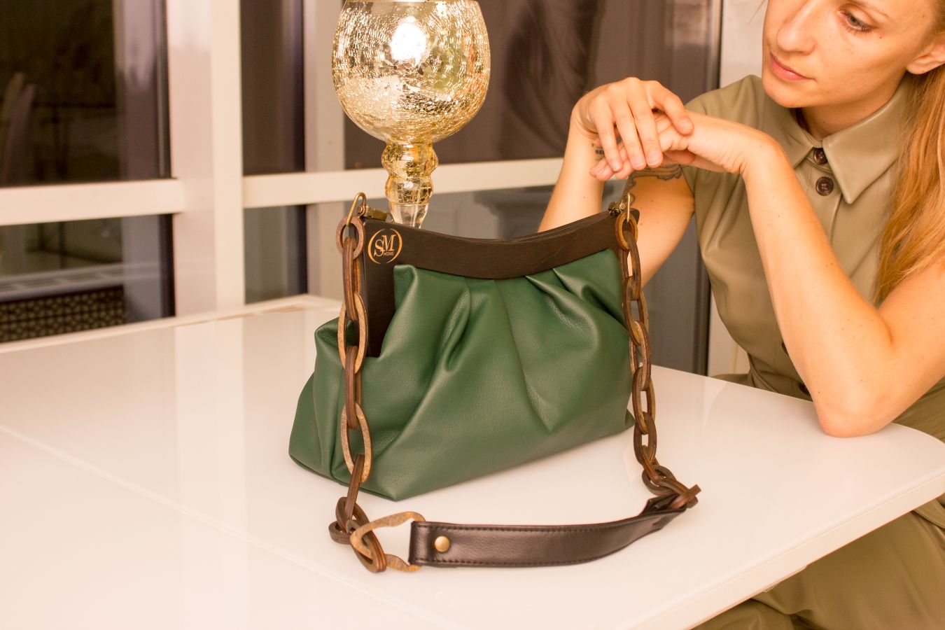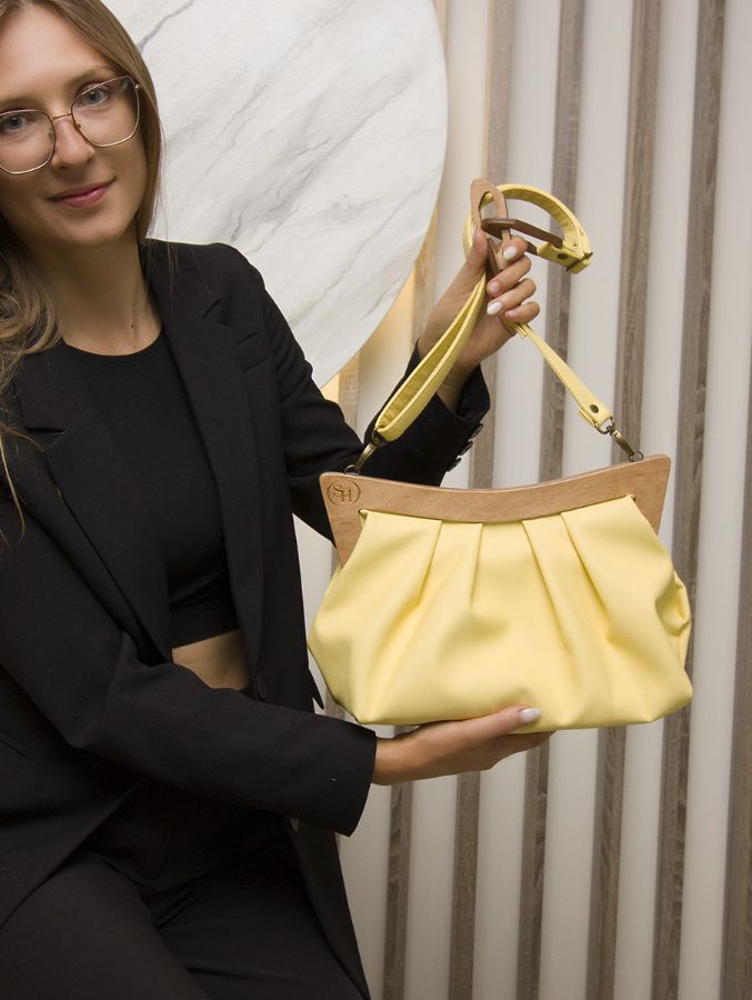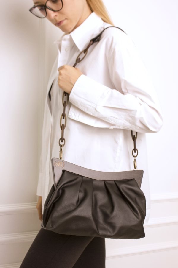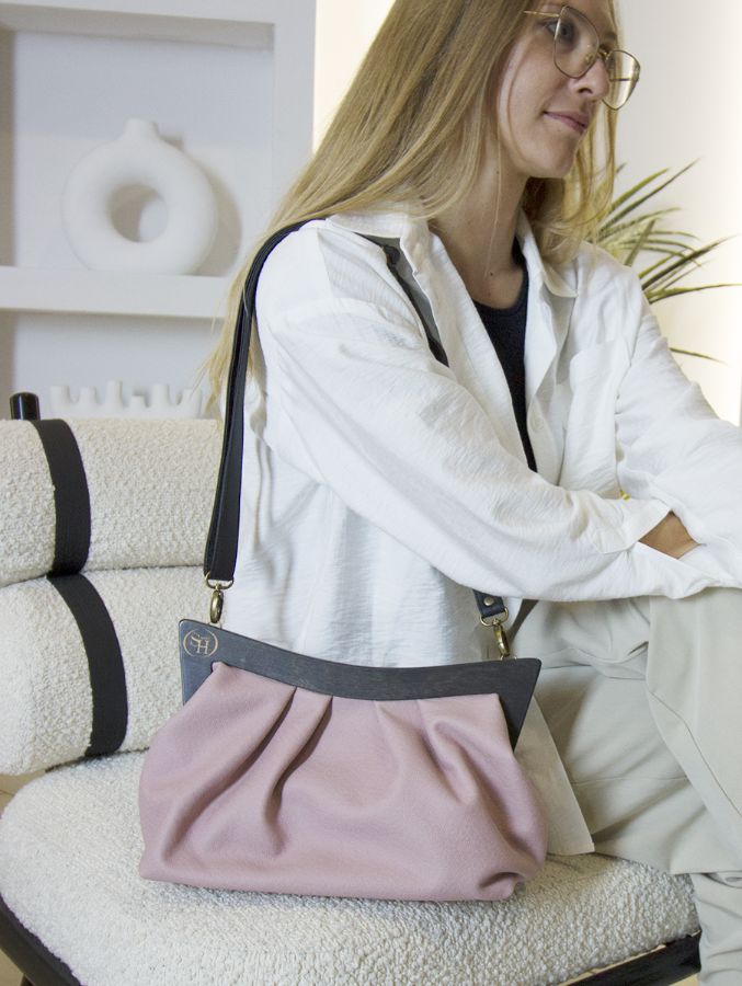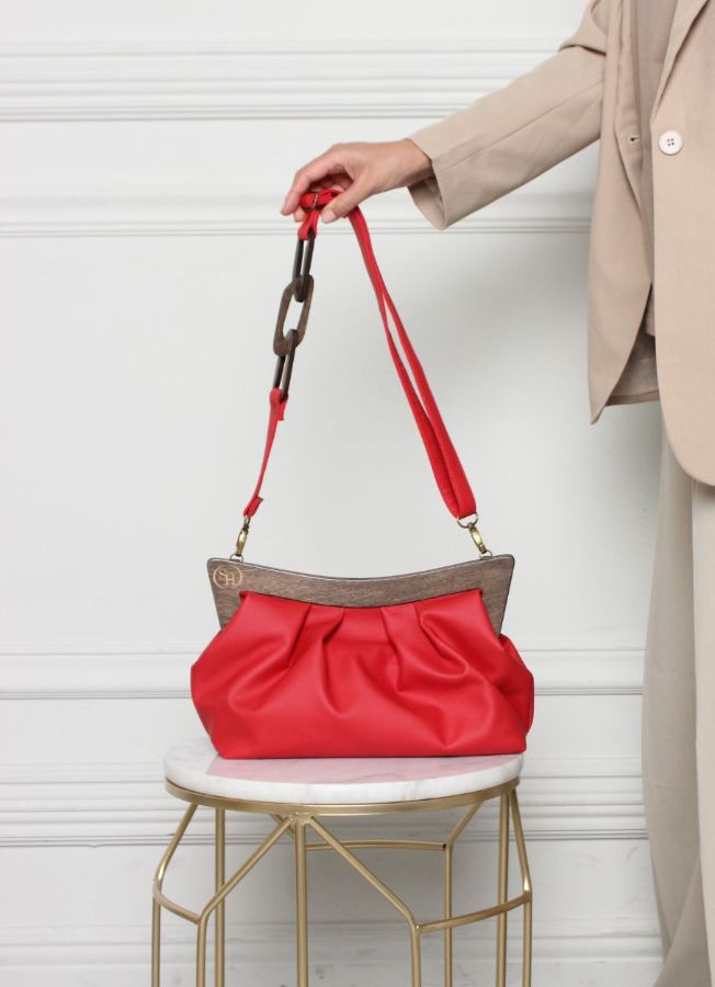 • деревянный ремень с плечевой вставкой из эко-кожи в цвет сумки или универсального цвета