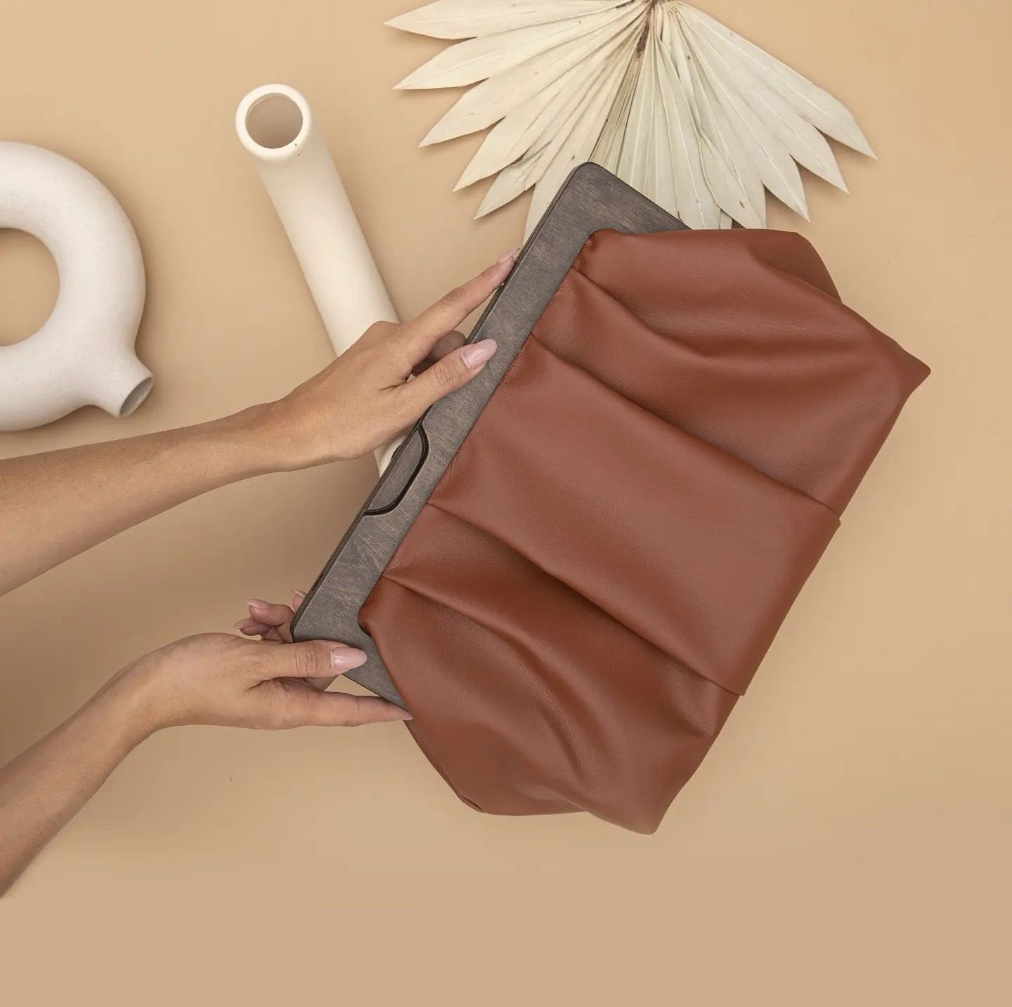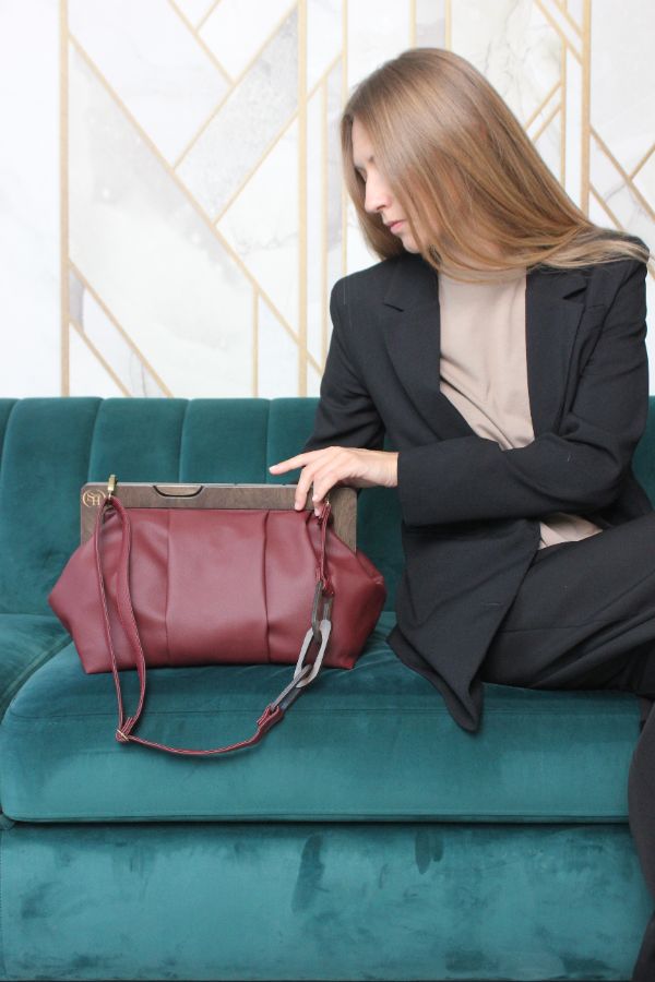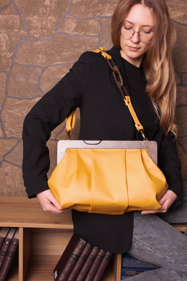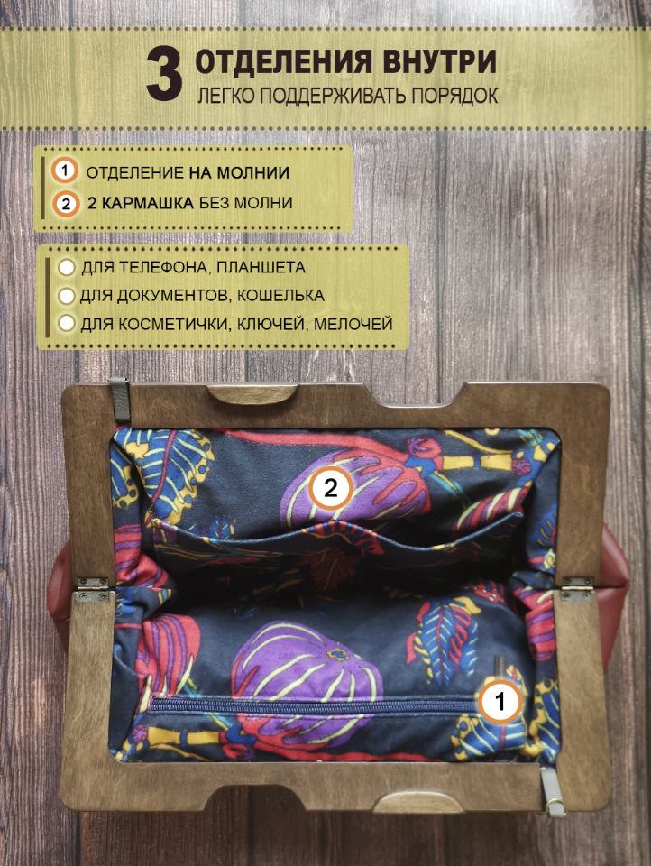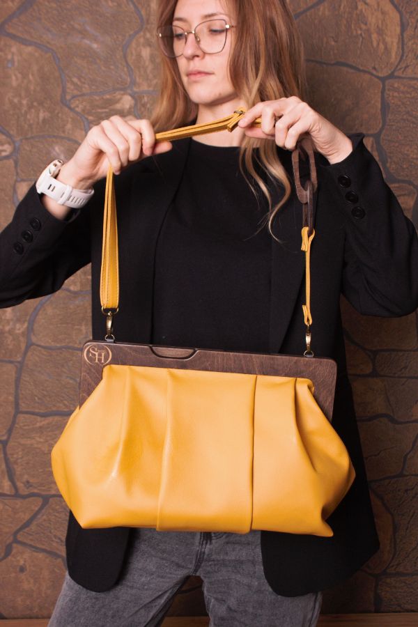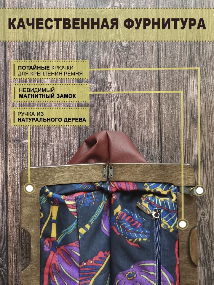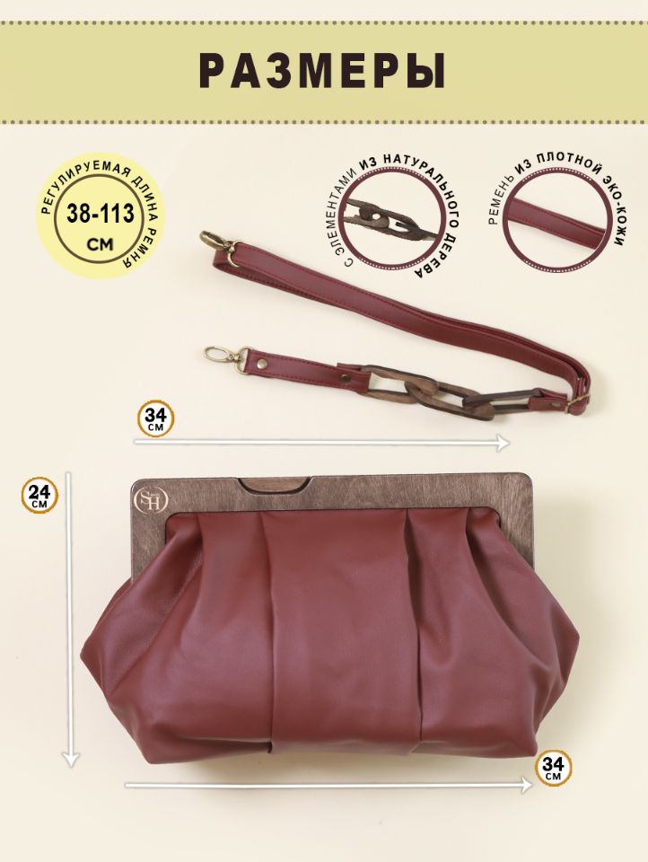 • деревянный ремень с плечевой вставкой из эко-кожи в цвет сумки или универсального цвета