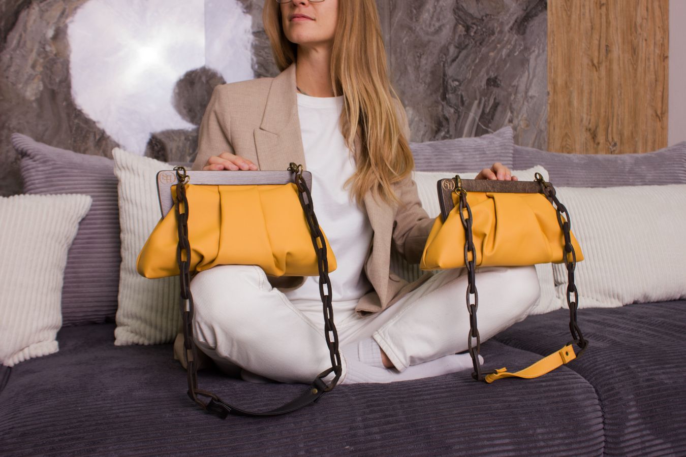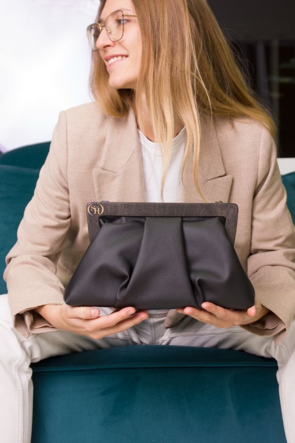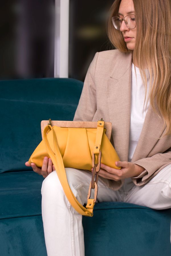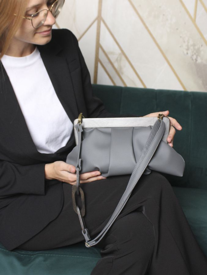 • деревянный ремень с плечевой вставкой из эко-кожи в цвет сумки или универсального цвета