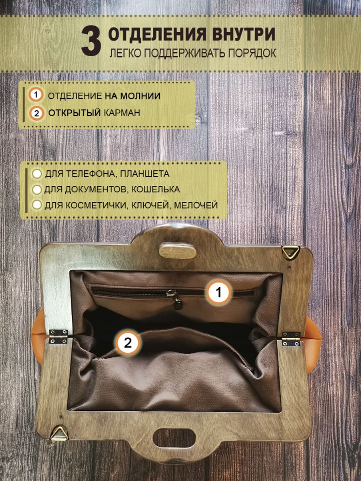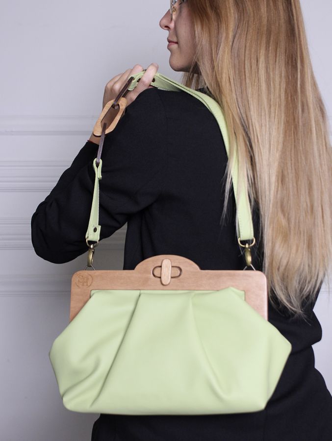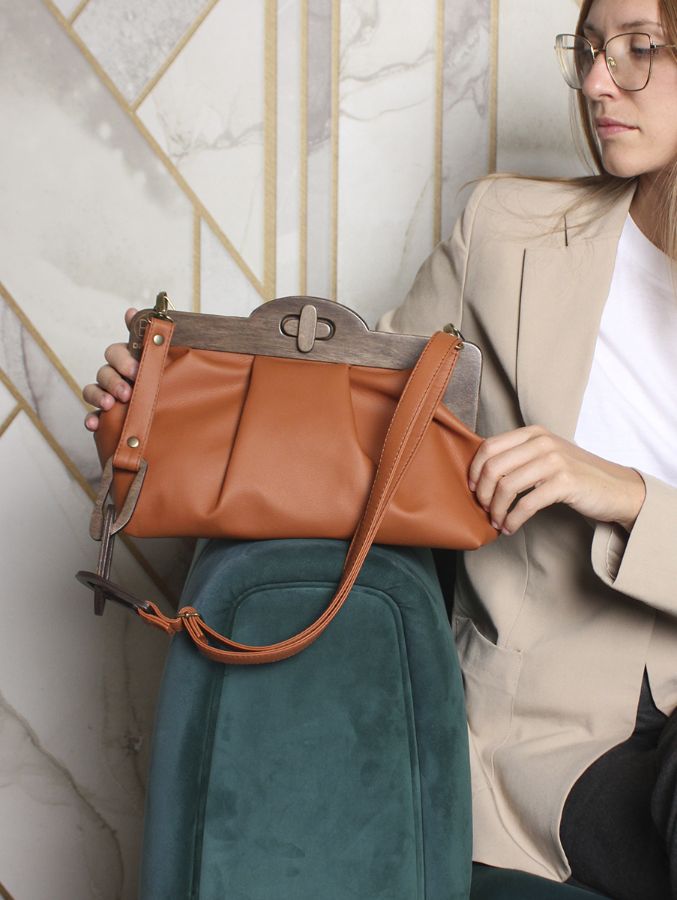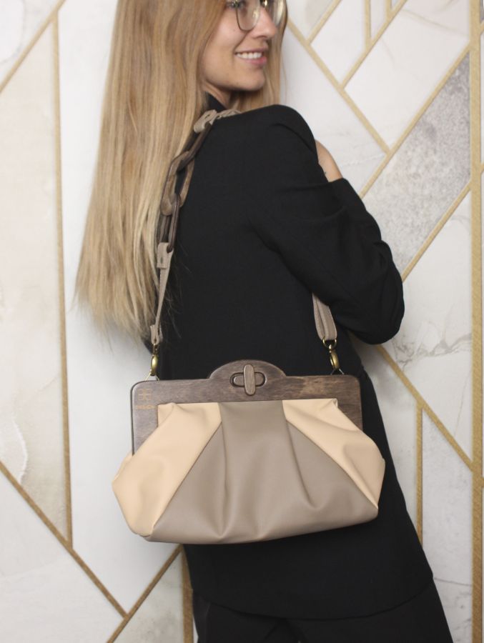 - деревянный ремень с плечевой вставкой из эко-кожи в цвет сумки или универсального цвета